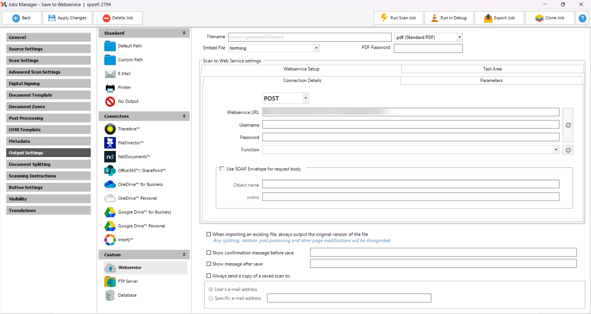 Global variables are persisted across all devices in the Scan2x network, and are used as in the following example: If the organization has external systems (e.g., a CRM or an HR system) that the Scan2x network is communicating with in some way, we can store the IP addresses for each system server as a global variable – see screenshot above. These variables can then be used within jobs, accessed when defining metadata by using the “open square bracket” character to enable the dropdown as in the screenshot below.