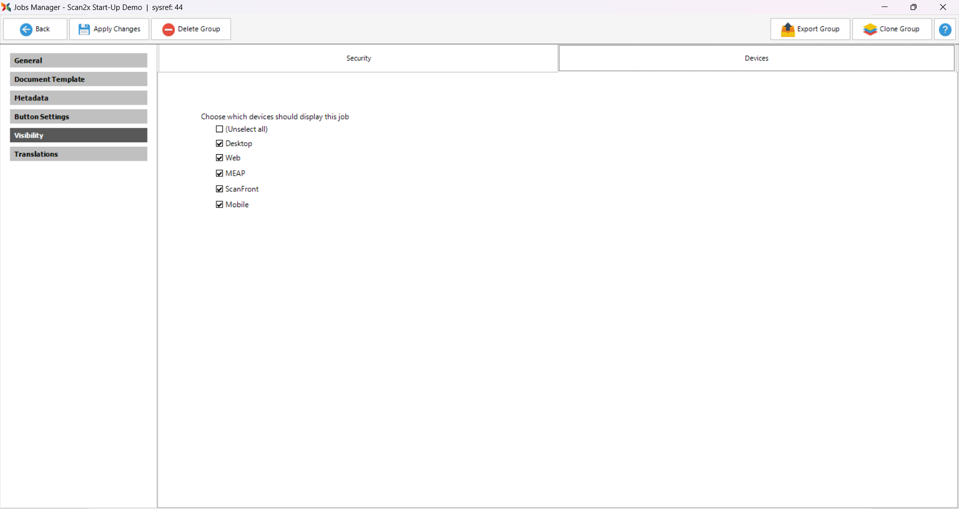 The Devices tab is used when you wish to show scan jobs on particular devices only.