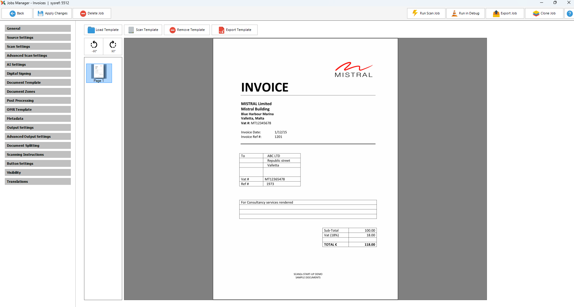 You can upload a sample document (hereinafter called a ‘template’) by scanning it in using the Scan Template Button, or you can import the template from an existing PDF using the Load Template Button. If you wish to replace an existing template, please remove the original one before adding the replacement, by using the Remote Template Button.