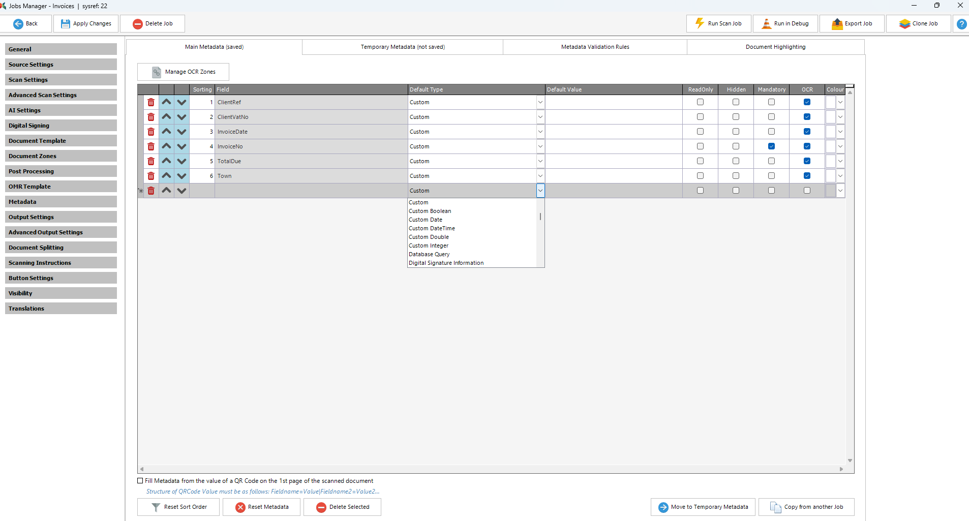 The Copy from another job button allows the administrator to copy metadata fields, such as ones which have Regex or C# expressions, of other jobs into their current job, without the need to recreate the metadata field expressions from scratch.