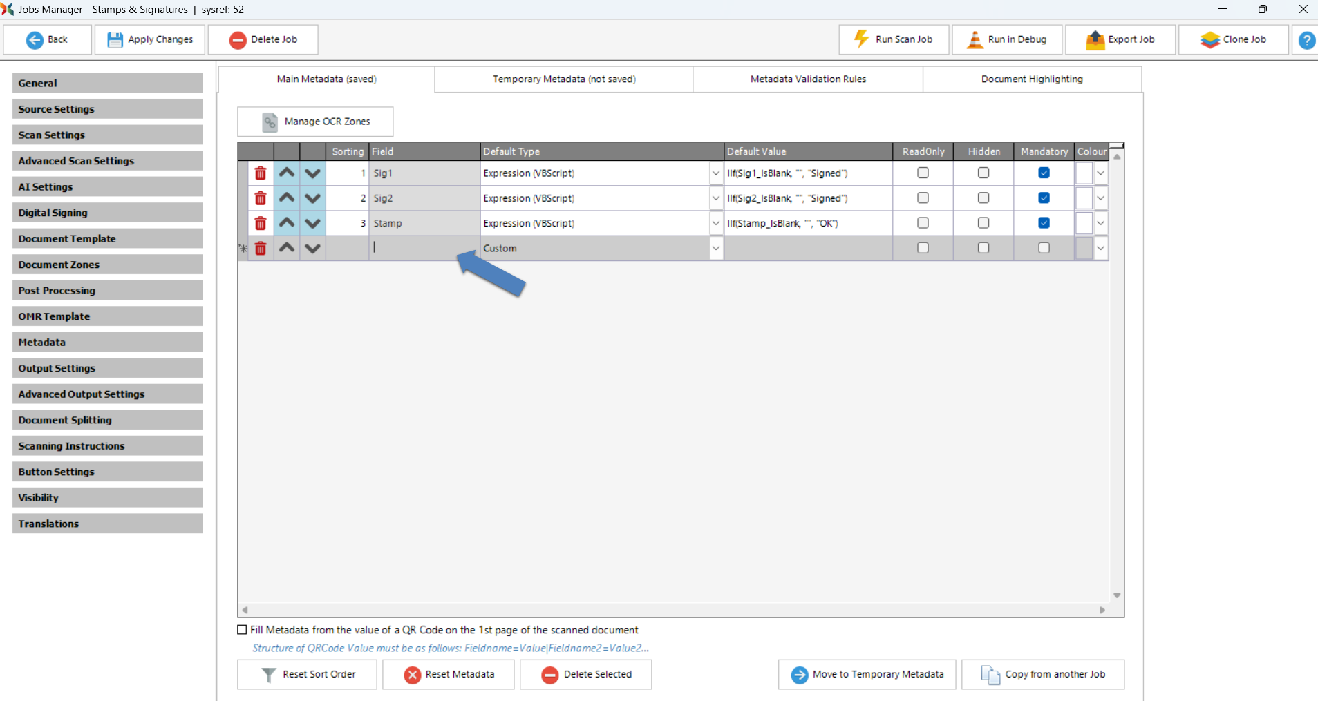 Selecting this option allows for the population of the field from AI, OMR operations or scans of standard form data like ID Card, Passport or Bank Cheque data.