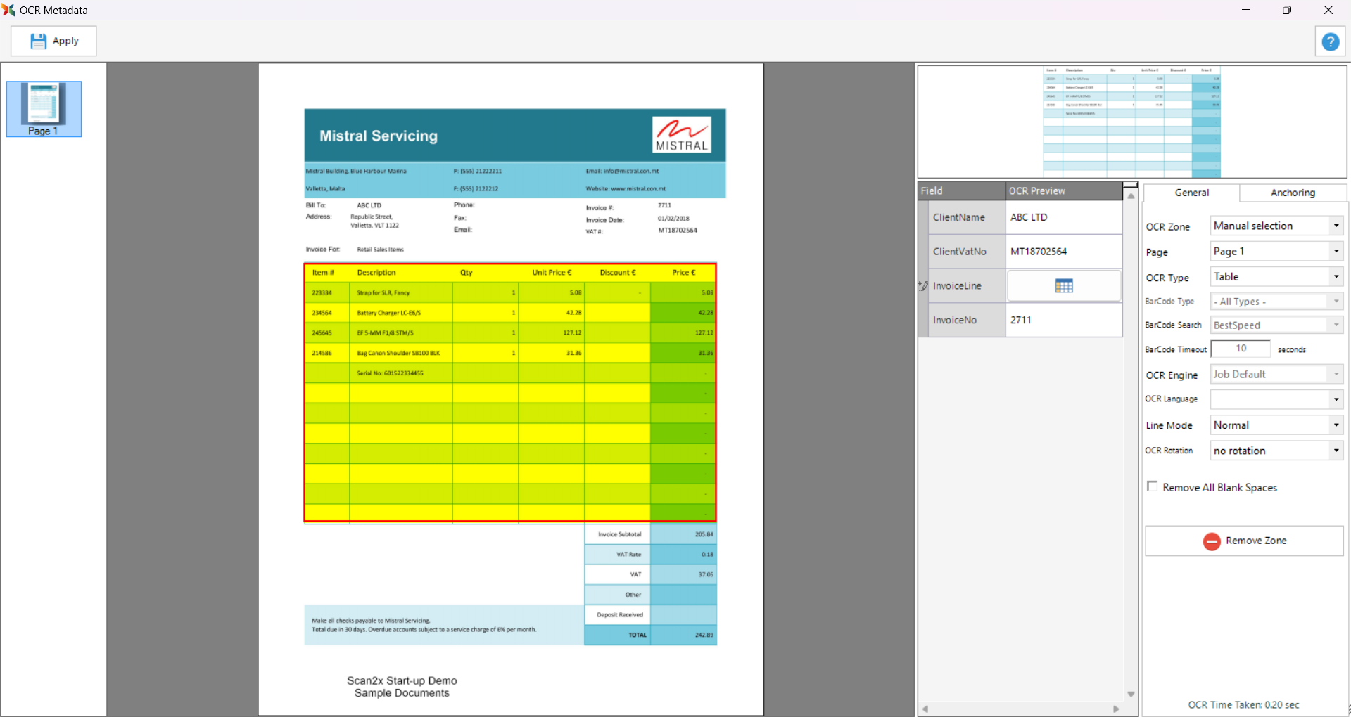In Scan2x, it is possible to define the OCR functionality of a metadata field as Table or Table With Headers – for more information on how to do this, please see the OCR Zones best practices Tab.