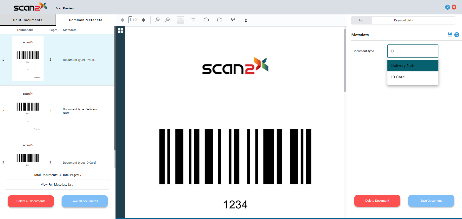 When a scan job with Keyword Lists is run on Scan2x, the metadata field will appear as shown in the image below.