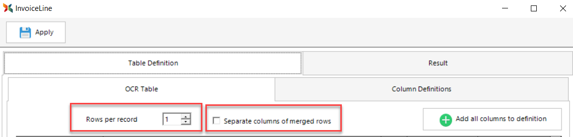 For example, this can be used in the case of invoices when the line item OCR results are 2 rows per line item (i.e 1 line item of data along 2 rows) because of the way the invoice is structured. With this option, administrators can specify that, for example, every 2 rows are actually 1 row of data.