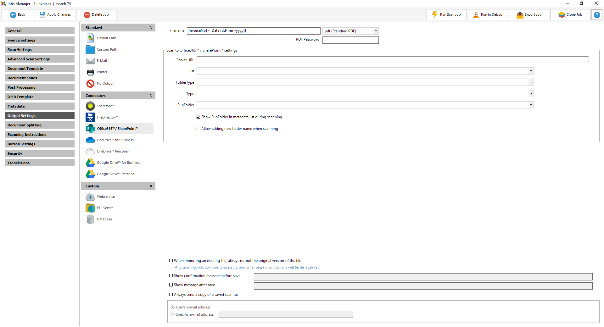 Scan2x has a direct connector to Microsoft’s Office365™ cloud based Sharepoint™ repository.