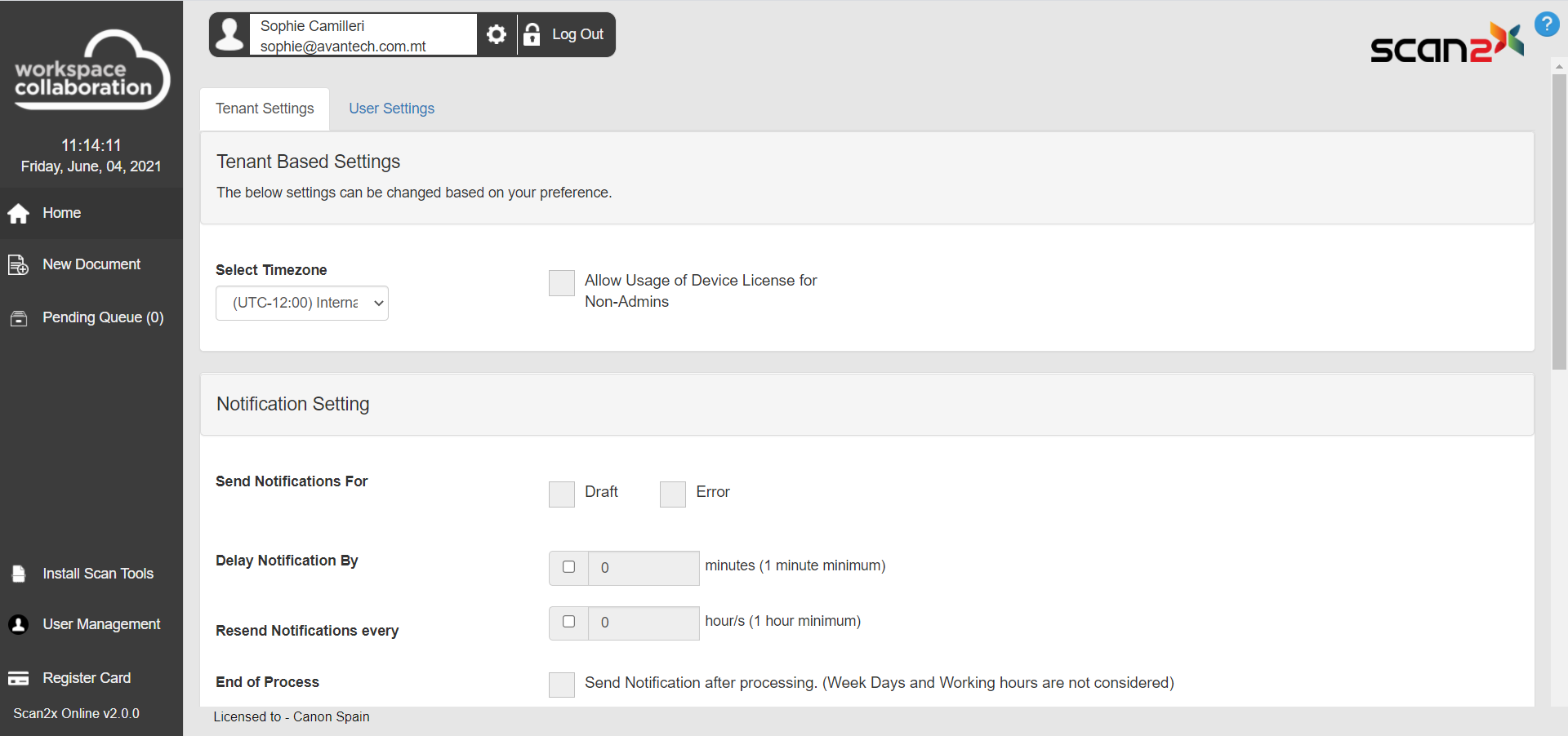 Two tabs can be seen by administrators: the Tenant Settings and the User Settings. Users will only be able to see User Settings tab.