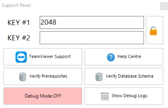 We understand that it is not always possible for us to connect remotely from our offices to help with problem-solving due to security policies, and so Scan2x has a comprehensive troubleshooting mode for administrators to help in identifying issues that may occur. To access this mode, log in as an administrator and hit the Ctrl-Shift-TAB keys simultaneously or press the blue question mark button at the top-right corner of the Home Page. The screen below will appear. By clicking the red “Debug Mode” button, it is possible to toggle debug mode on and off.
