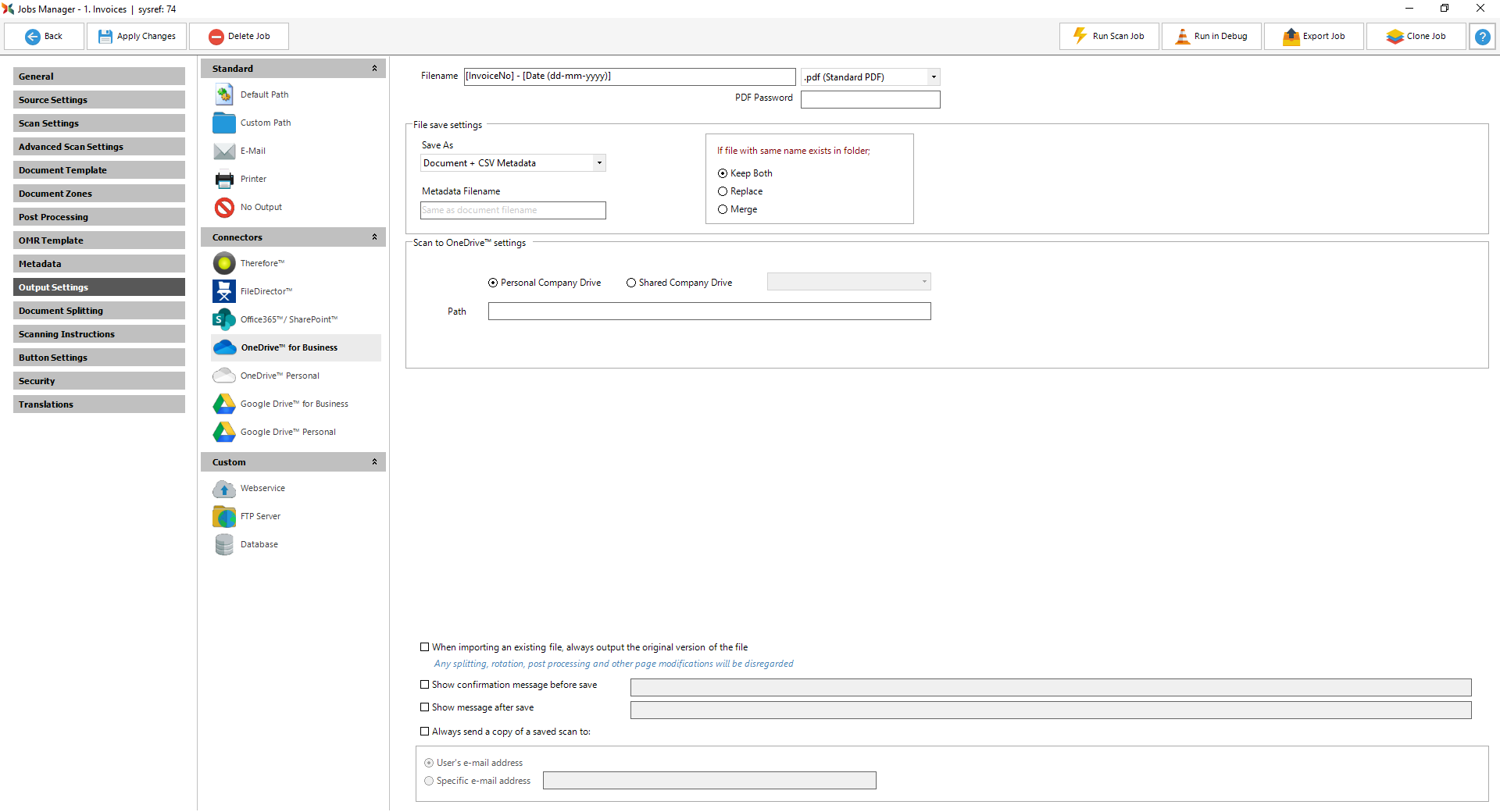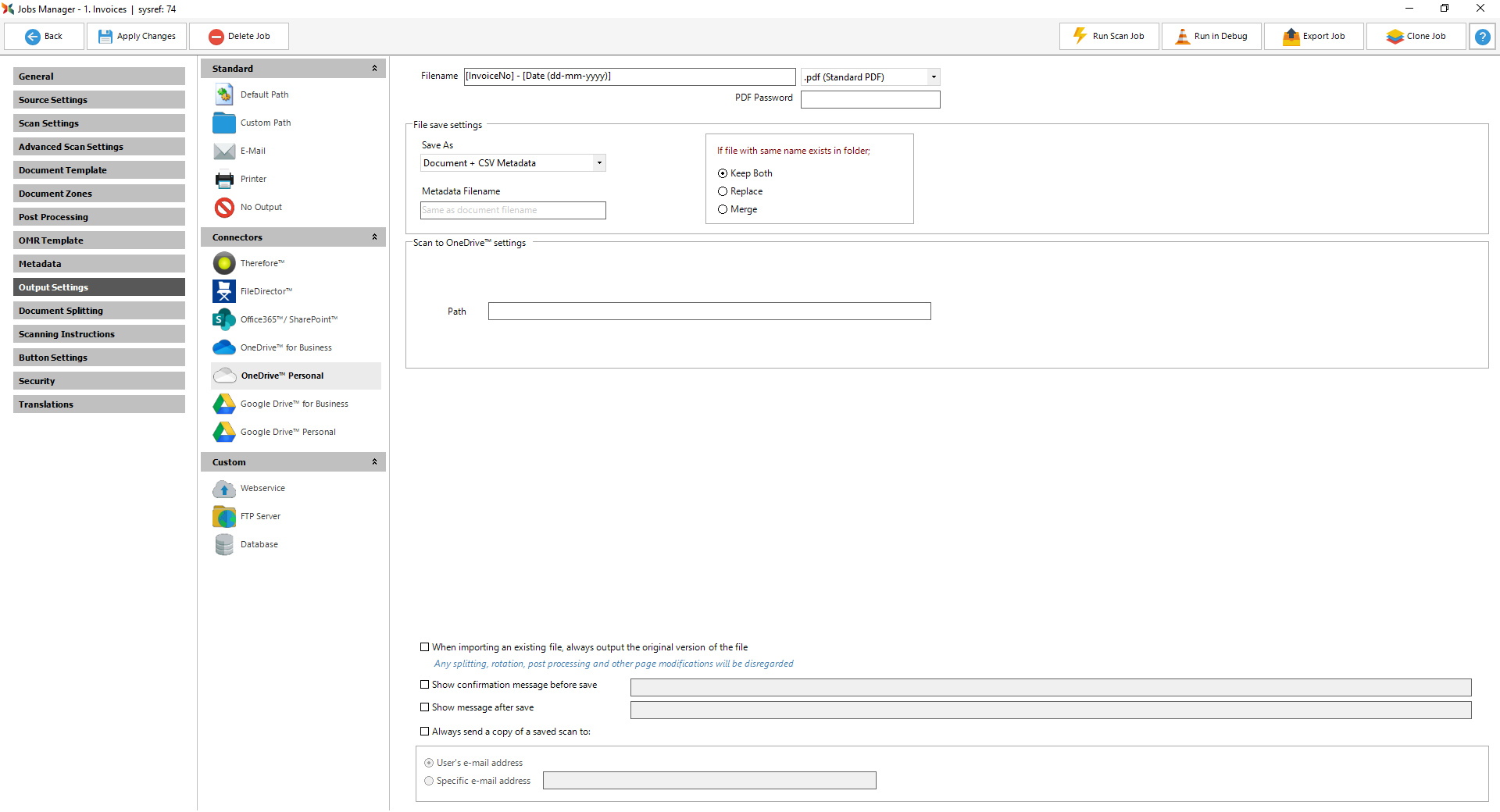 Scan2x is able to output documents to Microsoft OneDrive™ and OneDrive™ for Business, by selecting this destination in Output Settings. Scan2x will ask for authentication to access your OneDrive™ account via the industry-standard OAuth protocol. Scan2x will then use your Microsoft account to write your scans directly into your OneDrive™ service.