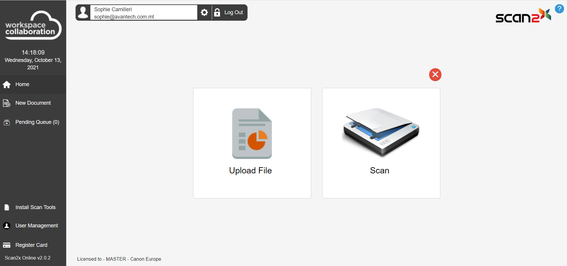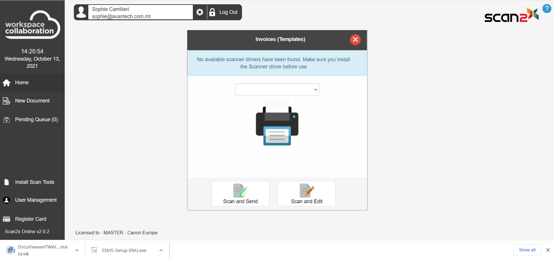 If the Scan button is clicked, the following screenshot will appear, showing available scanners in the dropdown section. In the case below, if no scanners are found the system will automatically start downloading the scan tools required.