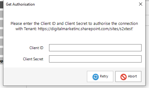 Fill in the ClientID and ClientSecret generated from within the previous section and click on ‘Retry’