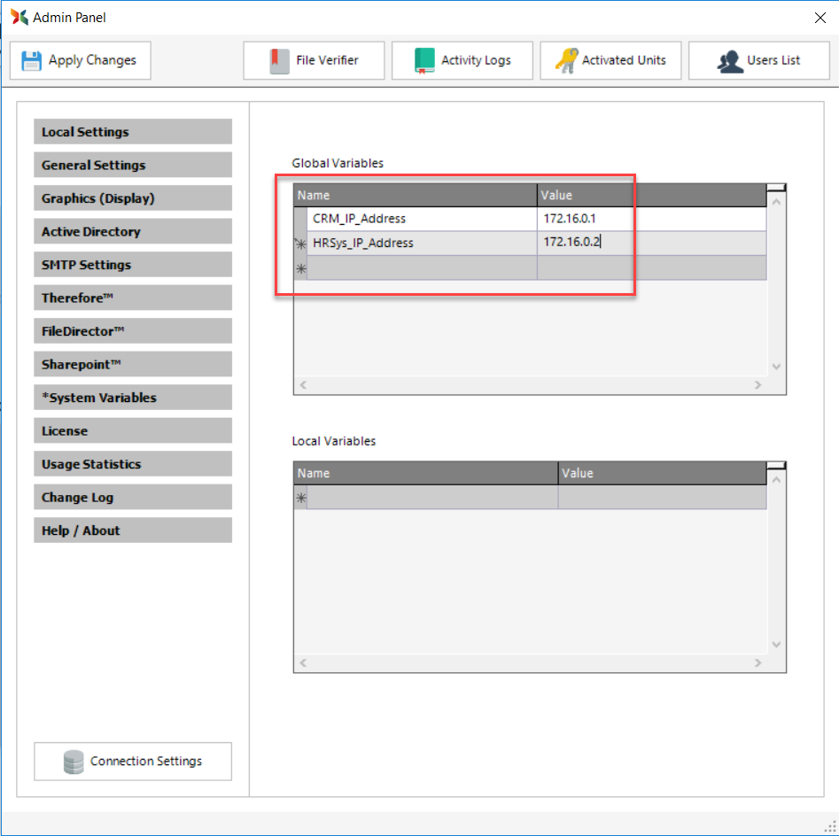 The Scan2x System Variables functionality allows for constants to be added to a workstation or the entire Scan2x network. These are set up using the System Variables tab.