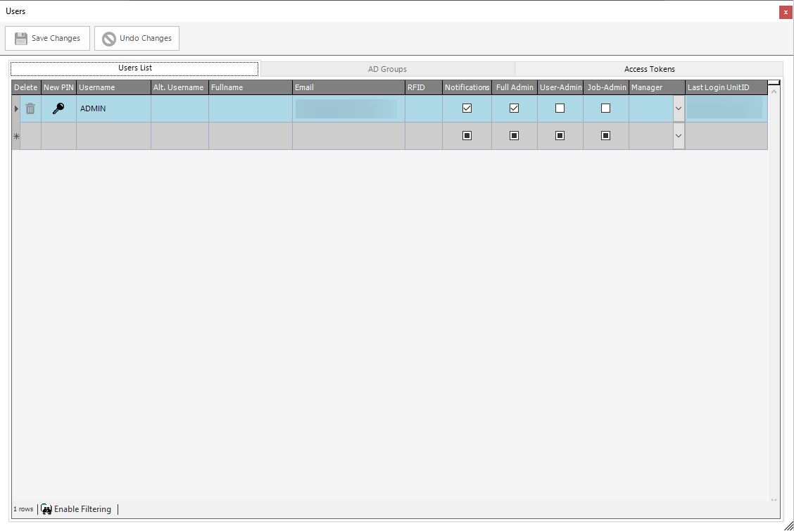 In this tab and when connected to a Windows or Azure Active Directory, an Admin can specify which AD Groups users are allowed to log into the system.