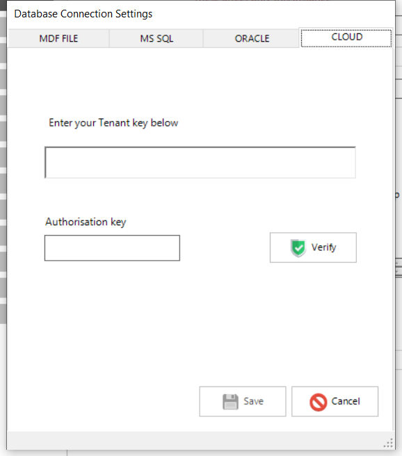 All Scan2x settings are maintained in an underlying database. This database can be in single use format (.MDF, used for small, standalone Scan2x installations) Microsoft’s SQL Database system (for multi-PC, ScanFront, imageRUNNER installations), Oracle (for those installations who prefer to use their Oracle infrastructure to host their Scan2x database) or Cloud, in which the Scan2x installation is connecting to Scan2xOnline Cloud Services.