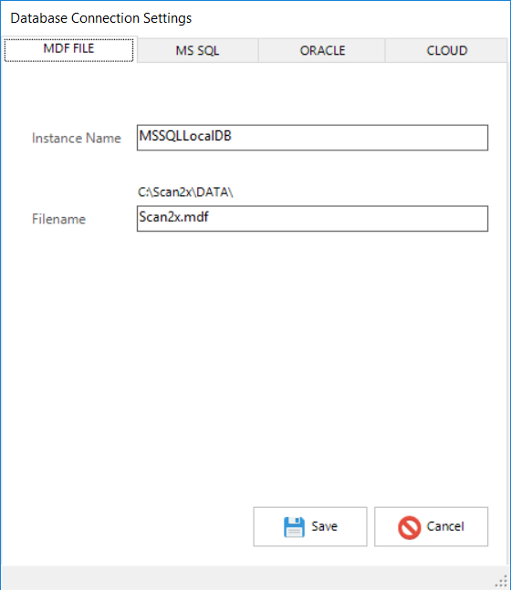 An MDF file is a database format that a standalone Scan2x installation on a PC can use to store its settings, audit and temporary files.