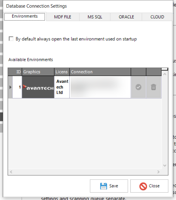 In order for the user to manage different clients' environments, Scan2x has created a tab called "Environments". This is shown in the screenshot below.