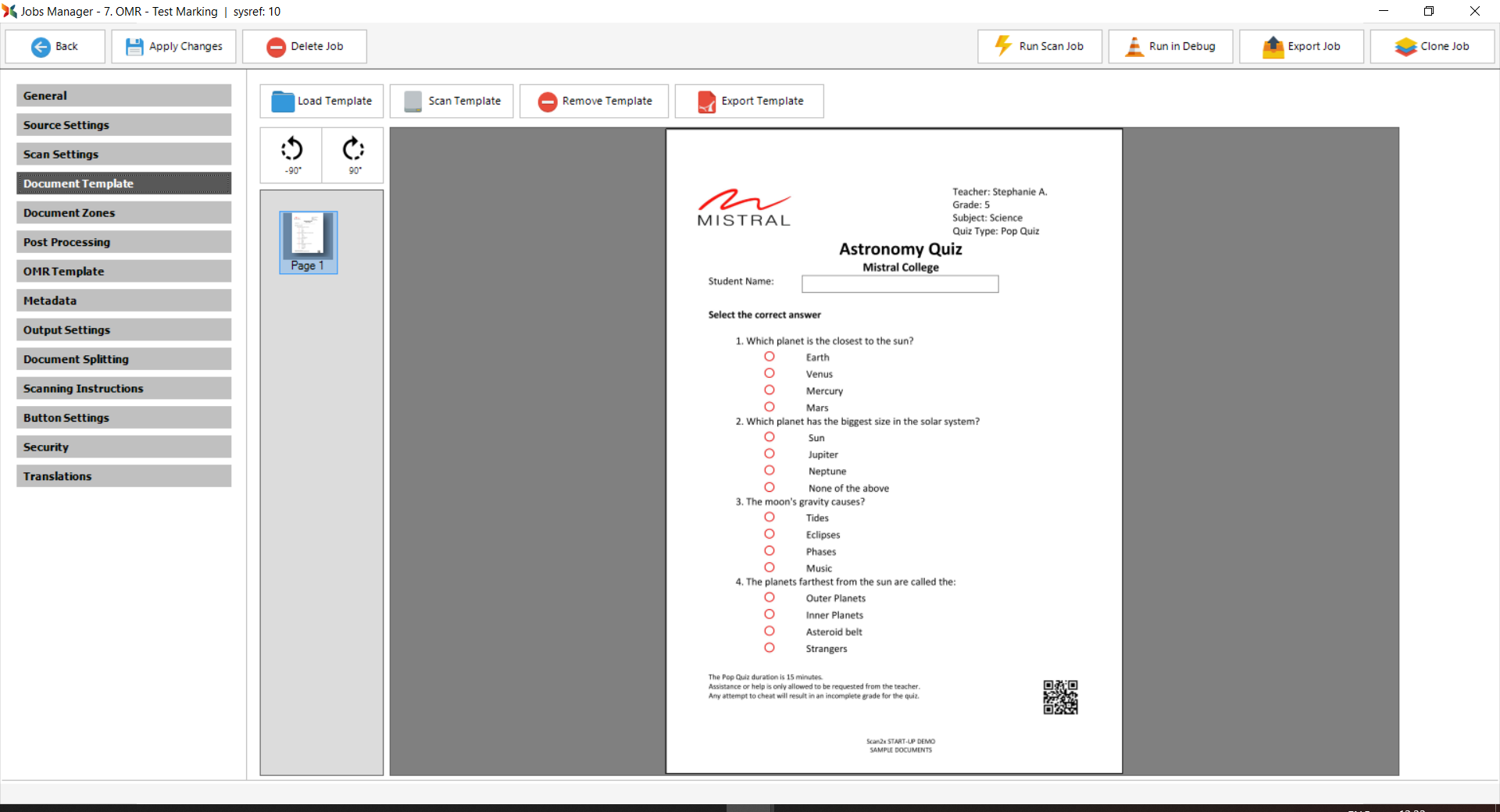 The Document Template tab is the tab in which you upload a sample of the document that this job is intended to scan. This optional step is only required if you plan to have Scan2x perform one or more of the following functions: