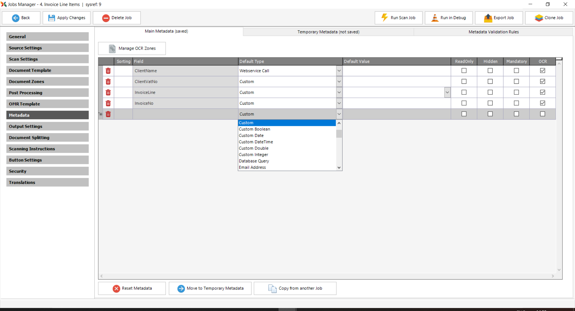Temporary Metadata Fields are placeholders for information to be used during the scanning process, normally for use with VBScript functions, Web Service calls or database queries.
